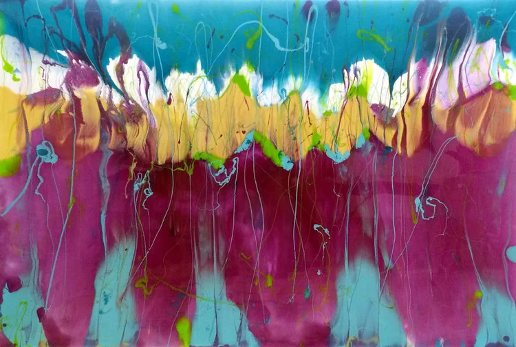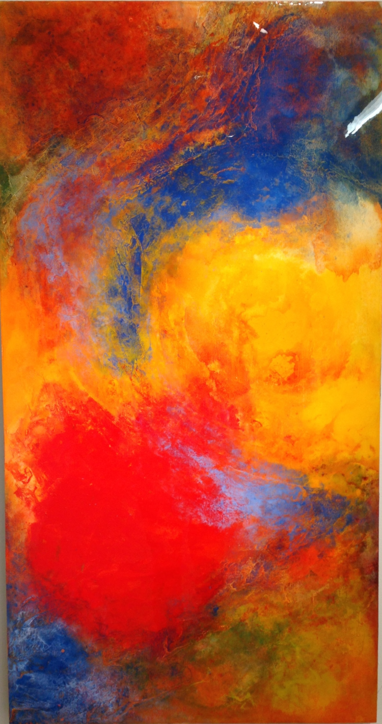 "glory" series radiates with colors rich in brilliance. The juxtaposition of the smooth layers of color over a textured surface result in an artwork that is energetic, yet tranquil.